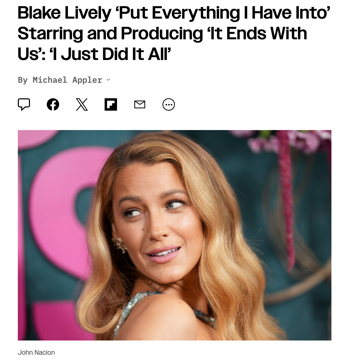 There’s a Blake Lively “backlash” going on. TikTok called it, as ever, and now it’s spilled out into industry bible the Hollywood Reporter and beyond. Much is in the eye of the beholder, but people are pointing variously to possible clashes with her It Ends With Us co-star and director, a potential read-between-the-lines tussle over who wrote a key scene in the movie of which she is producer and star, and how its rom com-esque floral marketing (including her press tour wardrobe) seems not quite to match its serious message about domestic violence.